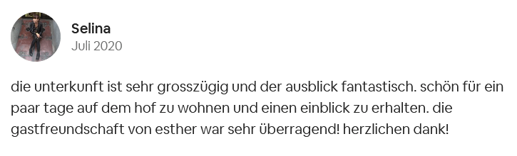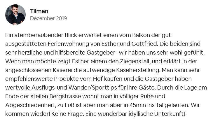 Klicken Sie auf den Button um zu unserem Airbnb-Inserat zu kommen. Überzeugen Sie sich selbst und lesen Sie was unsere bisherigen Gäste über unseren Bergbauernhof geschrieben haben.